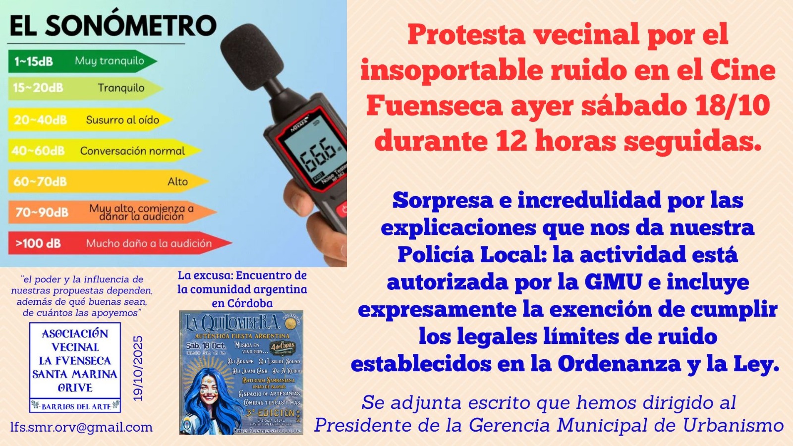 Protesta vecinal por el ruido en el Cine Fuenseca.