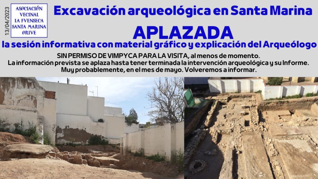 La información prevista se aplaza hasta tener terminada la intervención arqueológica y su informe. Muy probablemente, en el mes de mayo. Volveremos a informar