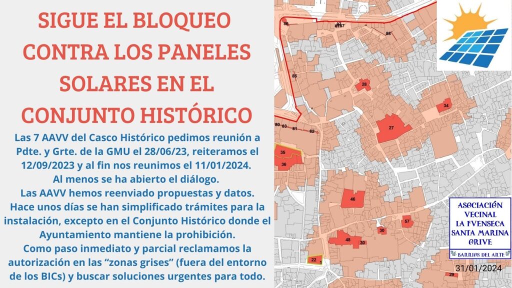 Las 7 Asociaciones de Vecinos del Casco Histórico solicitamos una reunión al Presidente y Gerente de la Gerencia Municipal de Urbanismo el 28 de junio de 2023, reiterándola el 12 de septiembre del mismo año y al fin nos reunimos el 11 de enero de 2024.